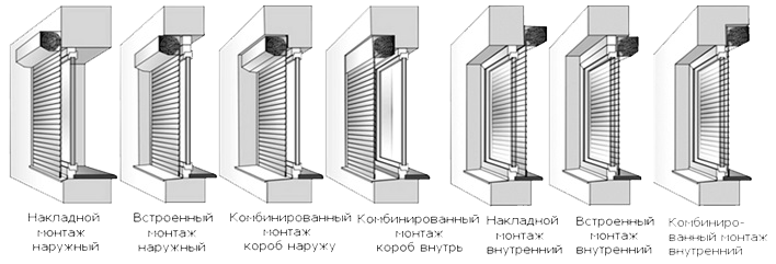 Рольставні можна встановлювати на дверні та віконні прорізи як з боку вулиці, так і з боку приміщення. У будинках, що мають історичне значення, де часто розміщуються офіси компаній, змінювати фасад не можна, тому ролети встановлюють зсередини приміщення. Іноді таке рішення виявляється більш прийнятним і з естетичної точки зору - це дозволяє підібрати колір в тон стін, а основні елементи ролет заховати над підвісною стелею.