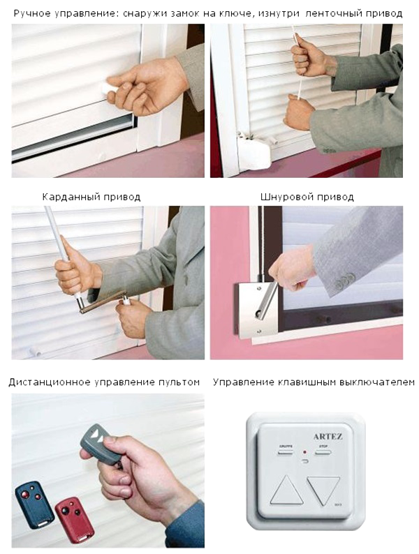 Рольставні з ручним приводом в основному використовуються в приміщеннях з невеликою кількістю вікон, маленькими або середніми прорізами. Широкий асортимент ручних приводів - шнурових, кордових, вороткових - дозволить підібрати найбільш зручний для Вас варіант управління ролетою.