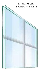 За технологією кріплення подібні венеціанським і відрізняються тим, що це розкладка у вигляді планок з алюмінію або синтетичного матеріалу, які розташовуються усередині склопакета, утворюючи за допомогою з'єднувачів певний просторовий візерунок (решітку, сонце, зірку). Їх робоча поверхня має ущільнюючу прокладку, а усередині склопакета в місці їх приклеювання поміщається дистанційна рамка, яка створює ефект конструктивних шпросов.Такі шпроси придатні для склопакетів з відстанню між стеклами 12-18 мм, їх ширина - 8,18, 26 і 45 мм, але самі товсті 45мм, не можна зігнути у вигляді дуги.